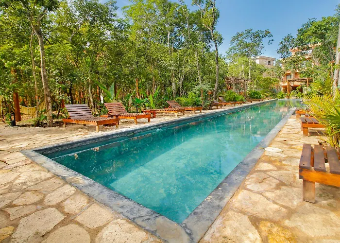 Gelegen 2 Kilometer von natürlichen Wahrzeichen wie dem Park Dos Aguas, bietet die Villa Aldea Savia Garden House Tulum einen Swimmingpool.